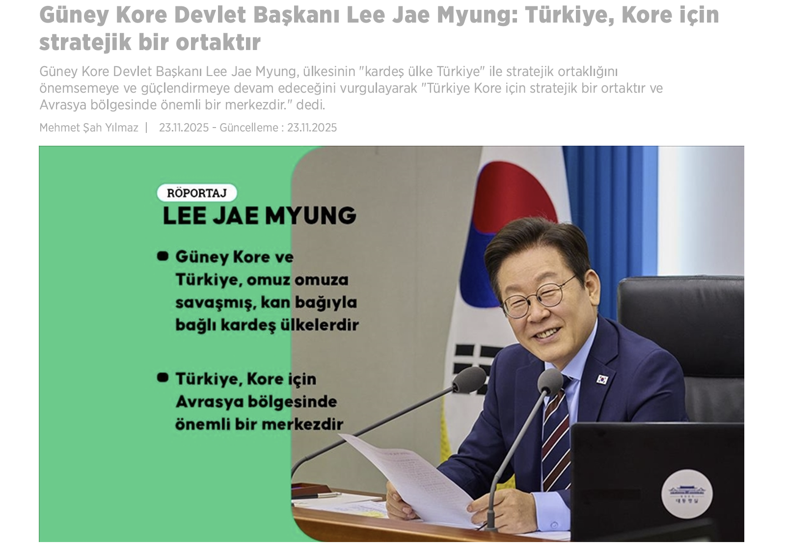 Güney Kore Devlet Başkanı Lee Jae Myung, Anadolu Ajansı ile özel röportaj gerçekleştirdi.