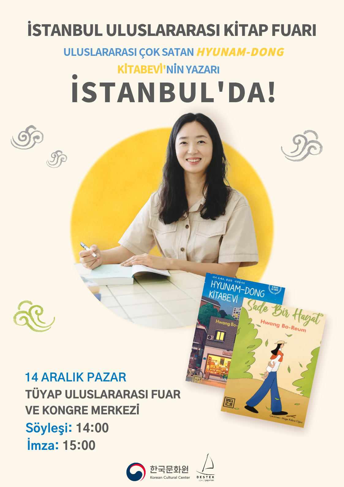 Koreli yazar Hwang Bo-reum’un “Hyunam-dong Kitabevi” adlı eserinin söyleşisi aşağıdaki tarihlerde İstanbul ve Ankara'da gerçekleşecektir.