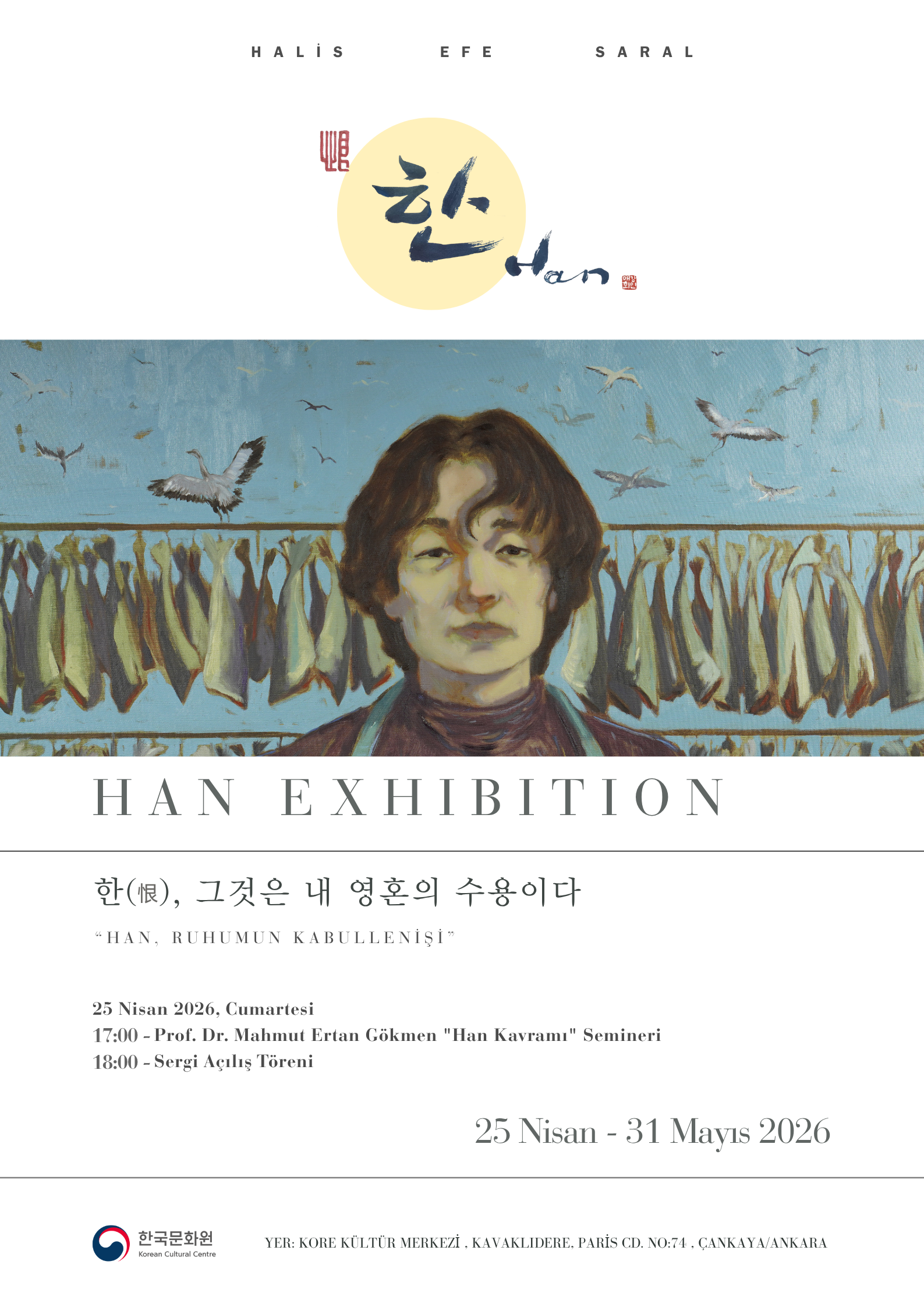 Türk sanatçı Halis Efe Saral’ın Kore ziyareti sırasında edindiği izlenimlerden yola çıkarak hazırladığı “Han Sergisi”, 25 Nisan – 31 Mayıs tarihleri arasında sanatseverlerle buluşuyor. Sanatçı, Kore kültürüne özgü derin bir duygu olan “han” kavramını, kendi sanatsal bakış açısıyla yorumlayarak 15 eser üzerinden izleyiciye sunuyor.
